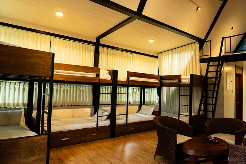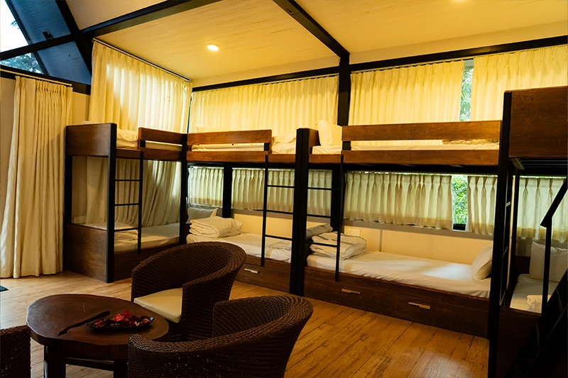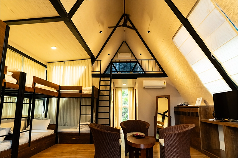 Spacious, warm, and built for togetherness—our group cottages are perfect for teams and big families seeking a shared escape in the heart of Coorg. With bunk beds, dual bathrooms, and a wide deck overlooking nature’s splendor, comfort meets community here.
